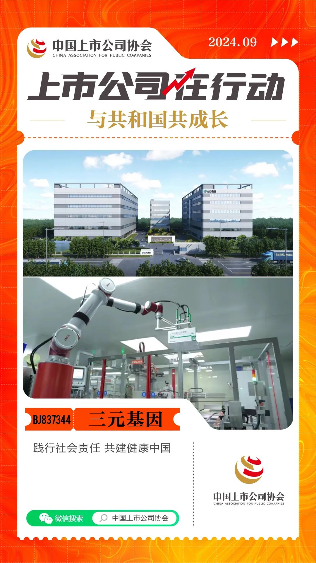 今天,讓我們關(guān)注上市公司三元基因(BJ837344)自創(chuàng)立以來(lái)踐行社會(huì)責(zé)任、共建健康中國(guó)的實(shí)踐。